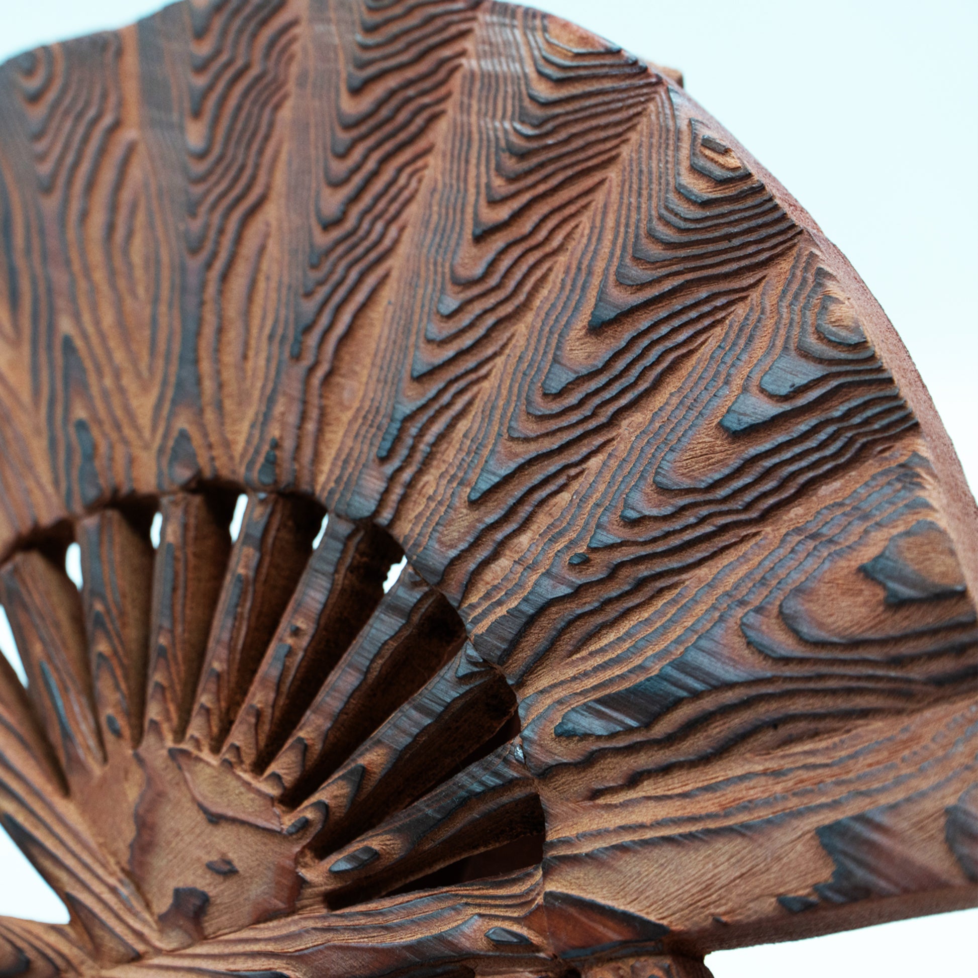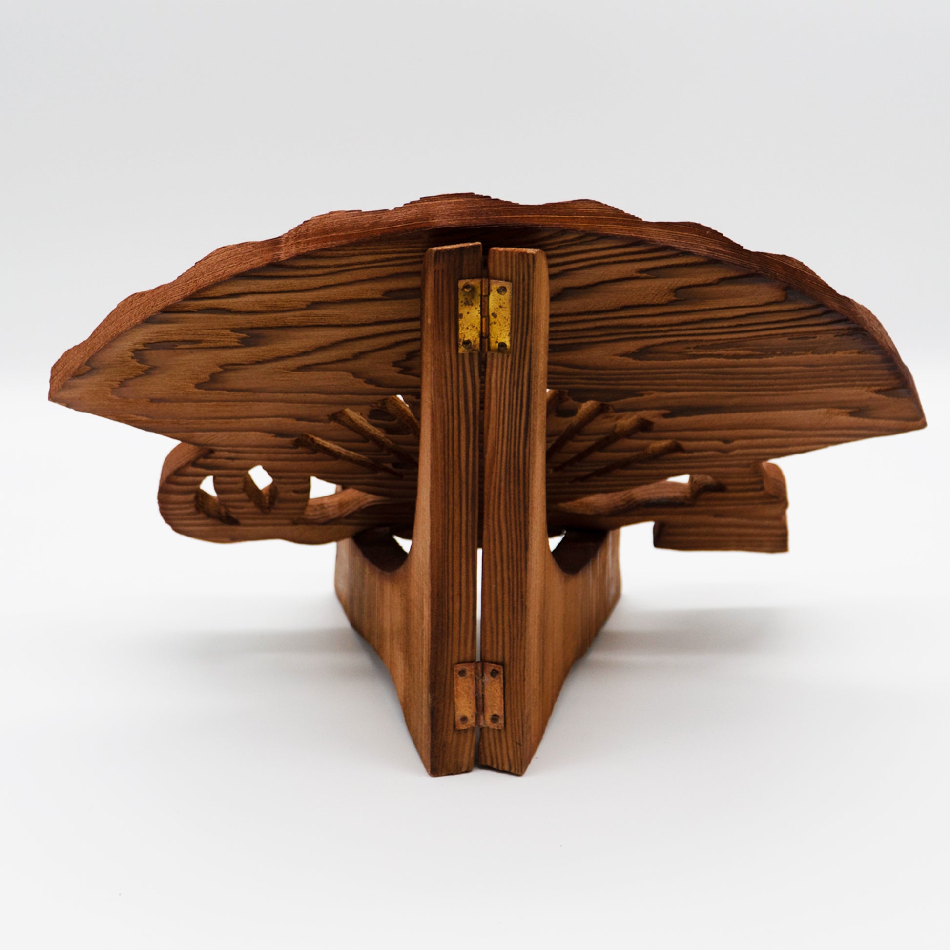 【鹿児島県産】屋久杉 手彫り飾り扇子 「松」 扇立て付き